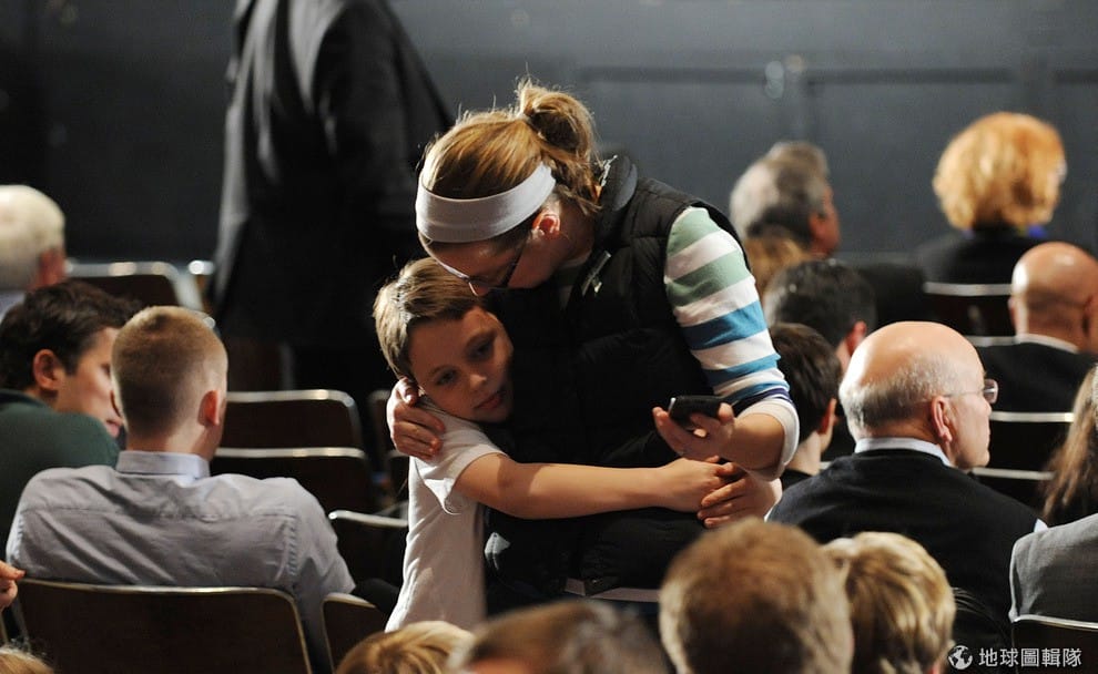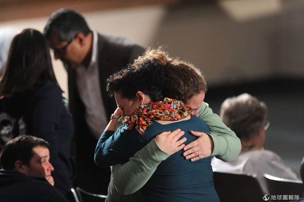 gettyimages新鎮當地的高中禮堂內,歐巴馬致詞完後,罹難者家屬、鎮民全都互相擁抱打氣。圖片來源:Olivier Douliery-Pool/Getty Images