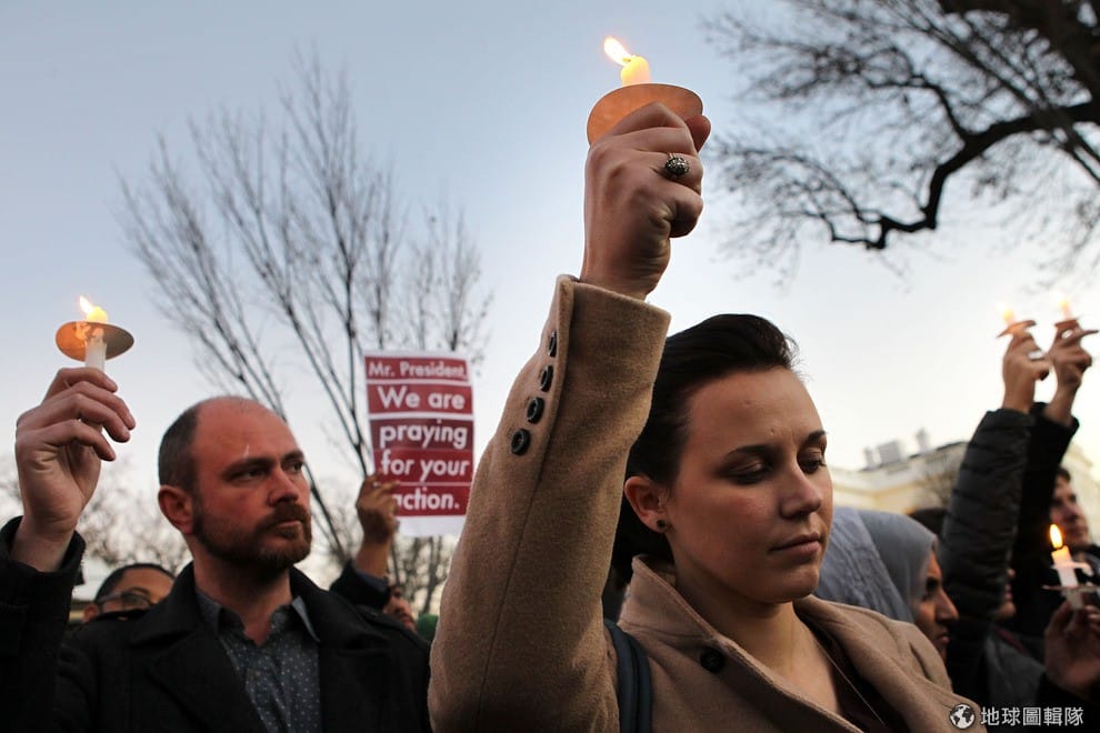 gettyimages華府也有民眾發起為罹難者祈福禱告的活動,他們聚集在白宮前,舉起白色的蠟燭禱告。圖片來源:Alex Wong/Getty Images