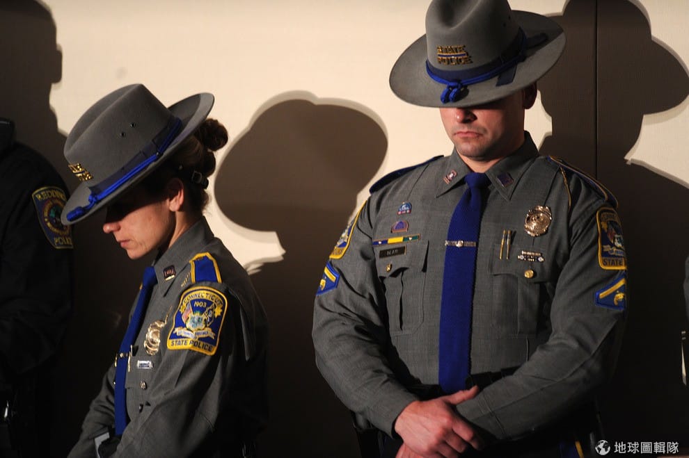 gettyimages一旁的警察人員也一同低頭哀悼。圖片來源:Olivier Douliery-Pool/Getty Images