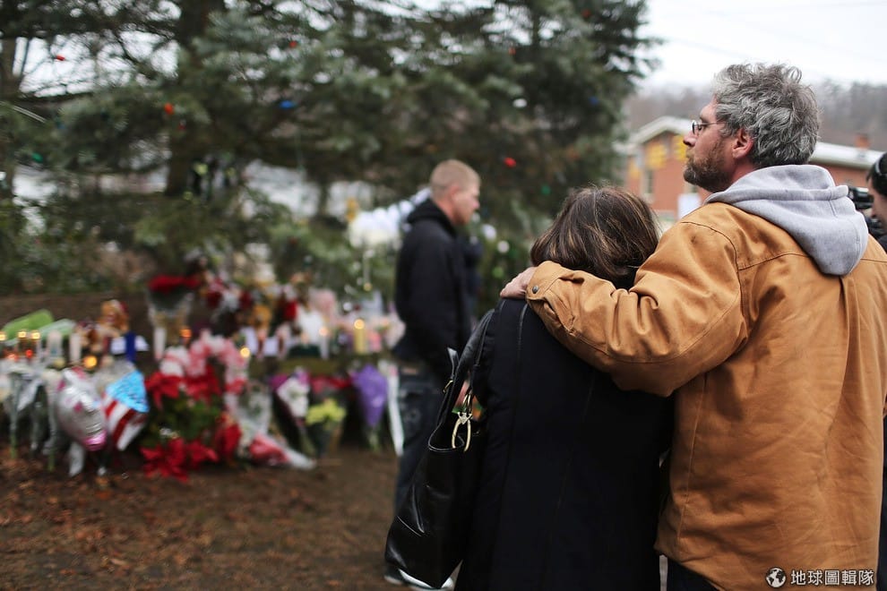 gettyimages鎮上滿是哀悼的人們,小學外的街道兩旁也放上哀悼罹難者的花束。圖片來源:Spencer Platt/Getty Images
