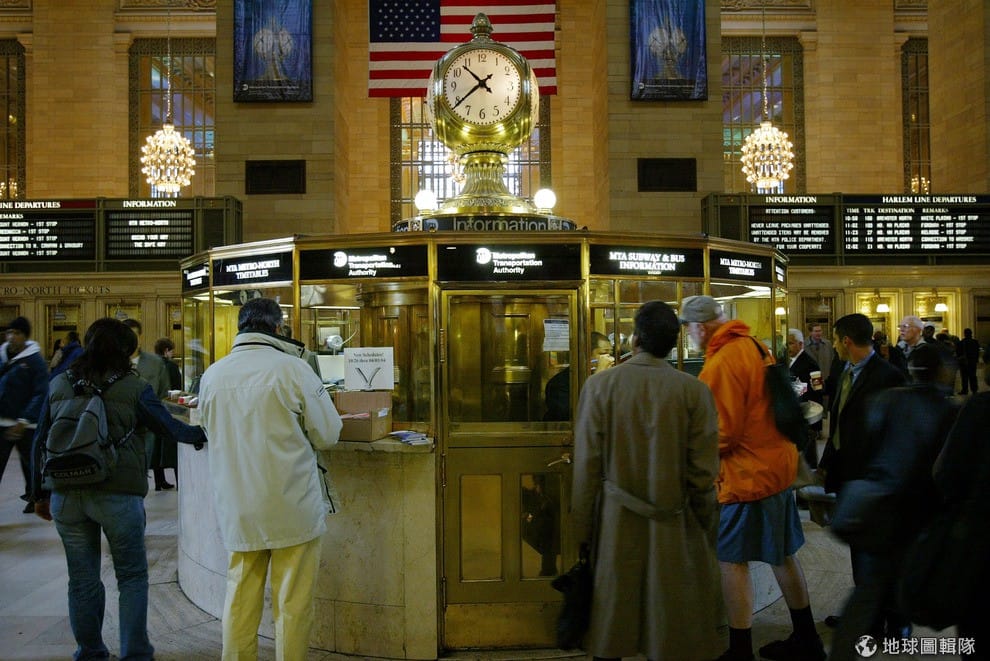 另一個中央車站「名物」,大廳中央的售票亭上方的「四面鐘」,這鐘用大理石和黃銅打造,售票寧內還有神秘的階梯可以直接通到地下樓層喔!圖片來源:Spencer Platt/Getty Images