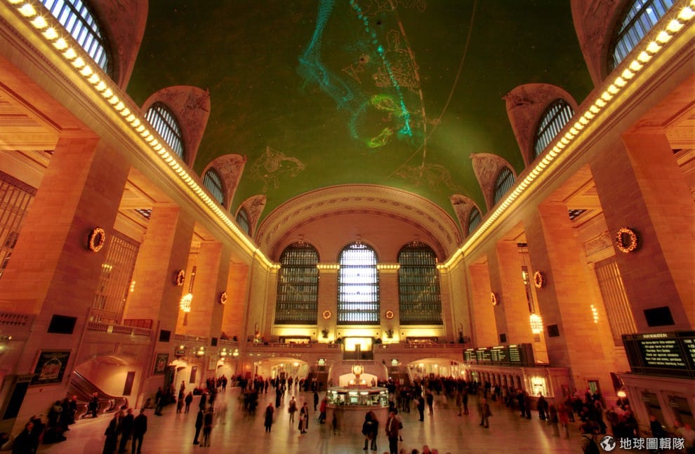 進入中央車站大廳,一定要記得望一望天花板!這是出自法國藝術家Paul Cesar Helleu的創作,仔細看你會發現天花板的星空圖是反方向的,後人解釋說因為這是要表現從上帝的角度來俯瞰星空,所以才有這樣的設計出現!忙著在大廳找方向時,別忘記抬頭望望天空囉!圖片來源:Spencer Platt/Getty Images