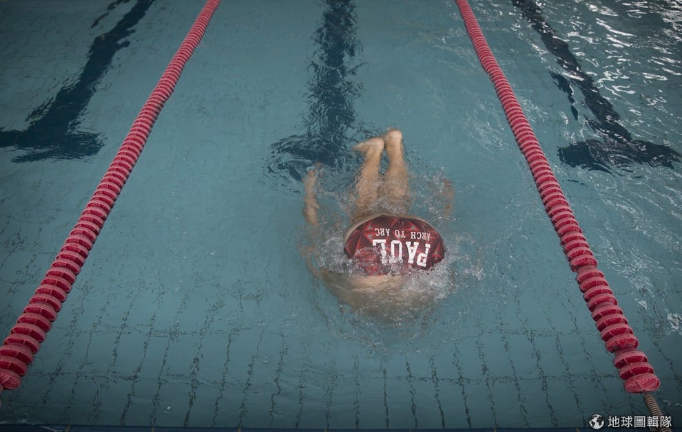 最年長的完賽者保羅正在為即將到來的三鐵賽泳訓。