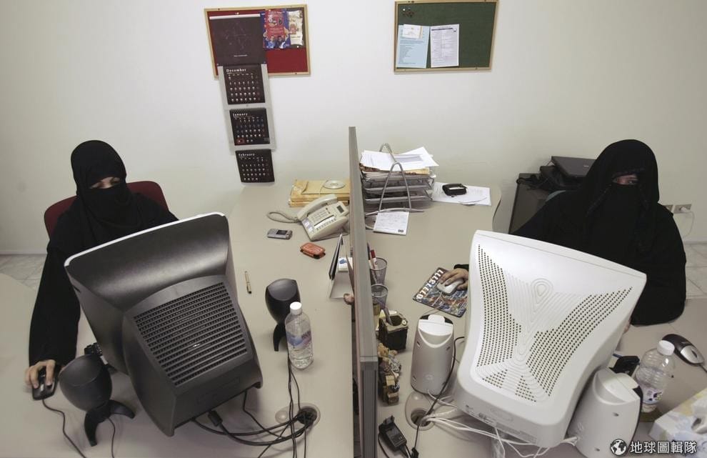沙烏地阿拉伯的網站設計公司中,女性人員正專注工作。