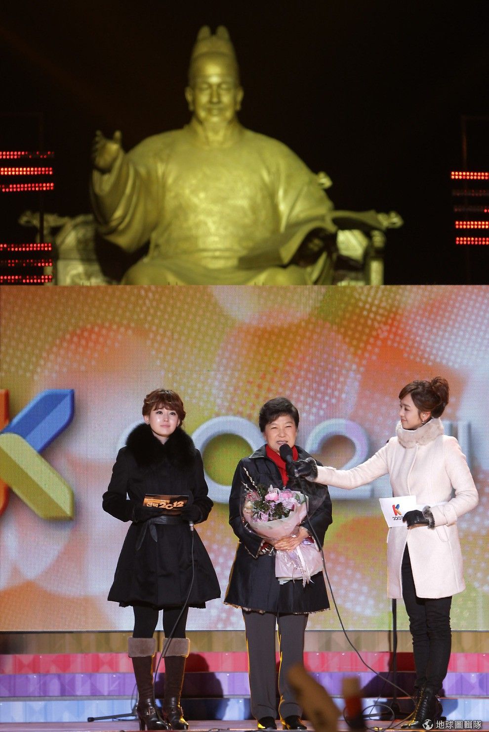零下10度低溫中,朴槿惠在支持者的簇擁下發表當選感言。圖片來源:Chung Sung-Jun/Getty Images