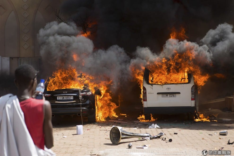 這場示威抗議是布吉納法索多年來最嚴重的一次,當中可見民眾焚燒建物車輛