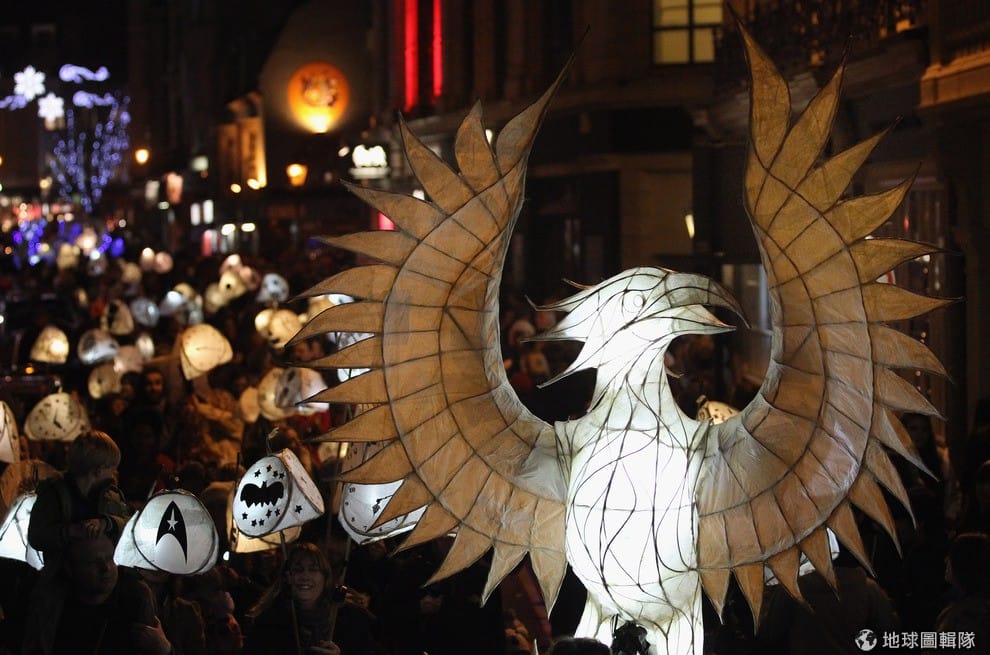 這場特別的遊行,由英國一個支持公平交易的組織──Same Sky──在1993年發起,他們特地選在節慶氛圍濃厚的冬季舉辦,把即將要消失的信仰或是慶典等元素綜合在一起,讓大家能用特別的方式享受一年的最後一個月。組織也提到他們的活動是一種對過度商業化聖誕節的反動,讓大家能用燒掉紙燈籠的方式告別過去,把心願寄託在新的一年,這樣看起來,是不是跟台灣的「放天燈」活動很像呢?快來看看吧!