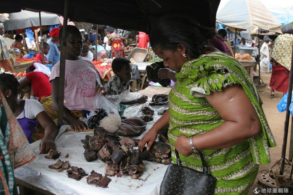 象牙海岸當地居民正大啖野味餐點