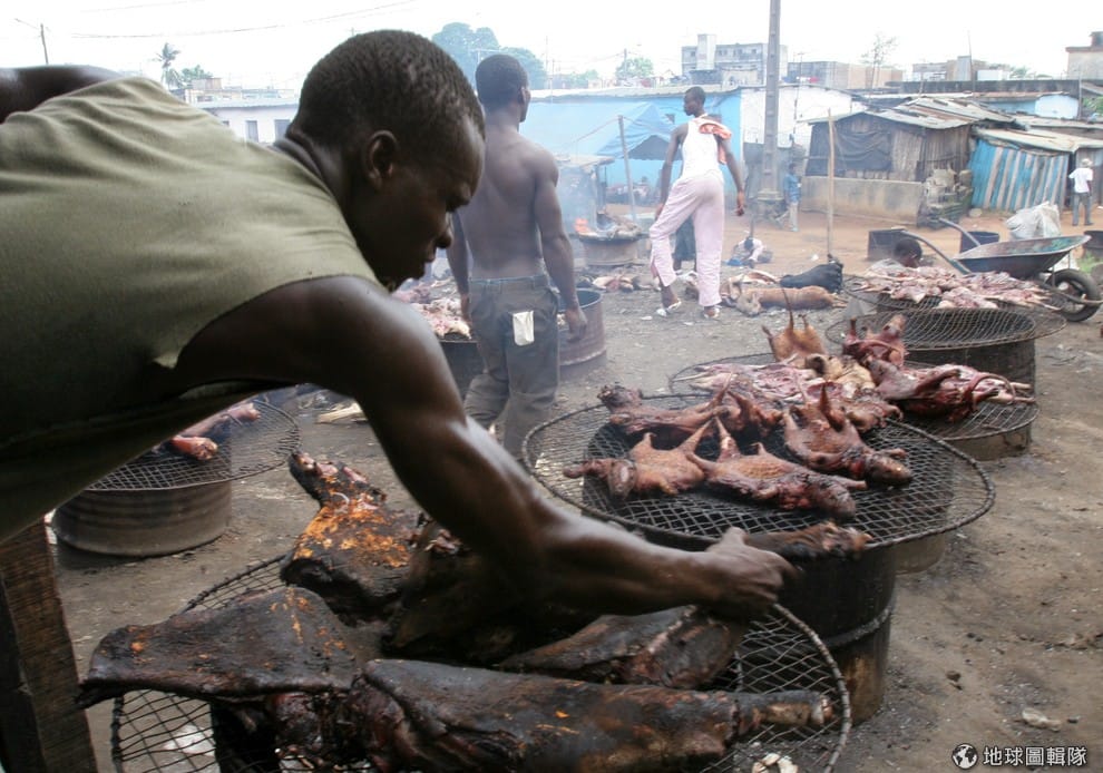 根據國際林地研究中心觀察,光是非洲的剛果盆地,住在此區的民眾每年消耗野味的數量高達500萬噸,其中,不少動物就可能帶有病毒在身上,以蝙蝠來說,牠們身上可以驗出各種的病毒,而果蝠又是帶有伊波拉病毒的動物。