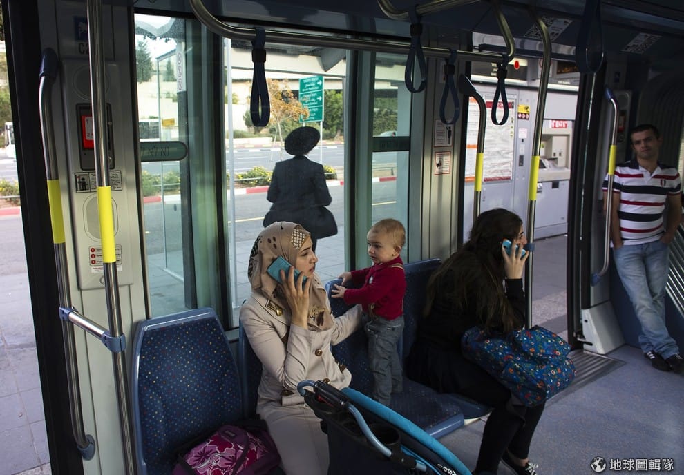 搭上電車,你會看見帶著傳統小帽的猶太人和包著頭巾的穆斯林女性坐在一塊,他們身旁還有正準備上市場的巴勒斯坦籍農人以及趕著上學的巴勒斯坦男孩,每個人的共通點都是忙著講點話,不同的是他們用的語言五花八門:有希伯來語、阿拉伯語、俄國話、阿比西尼亞語還有英語。