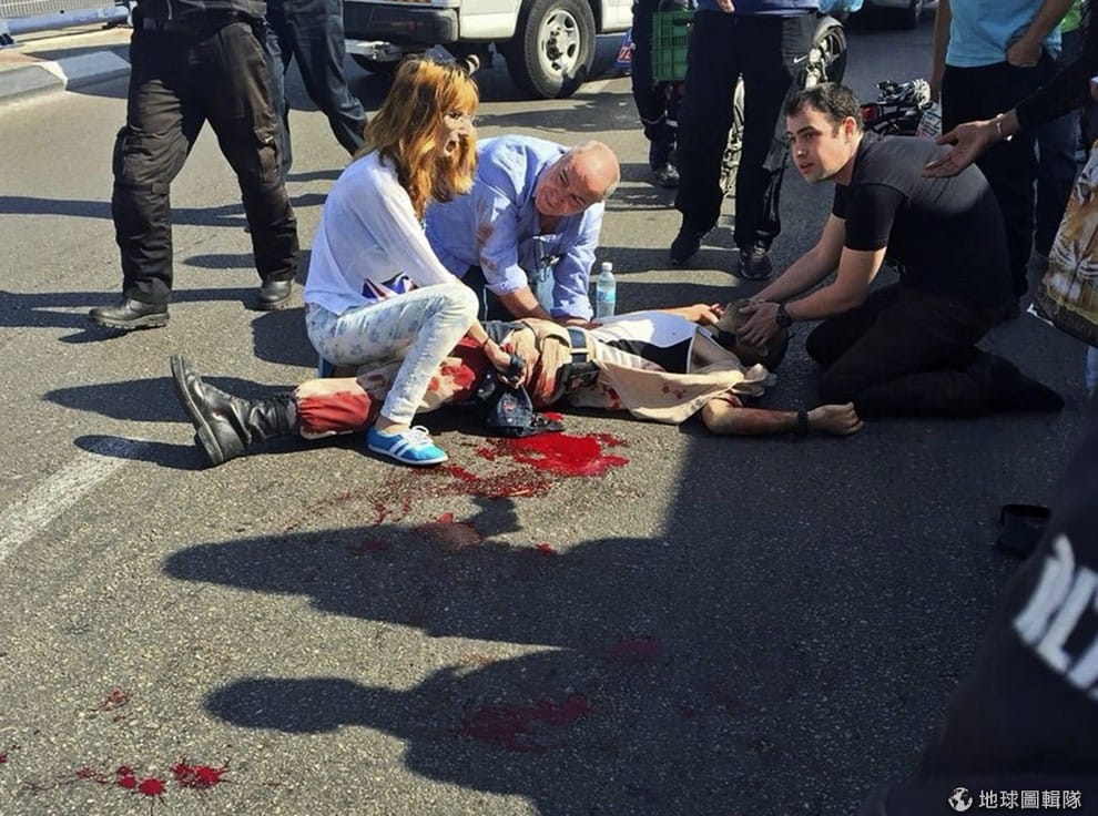 繼續閱讀11月10日時,以色列在一天內就傳出2起巴勒斯坦人攻擊以色列人的消息,照片中是被刺傷的路人,她滿身鮮血倒在地上,急救人員正在救治中。