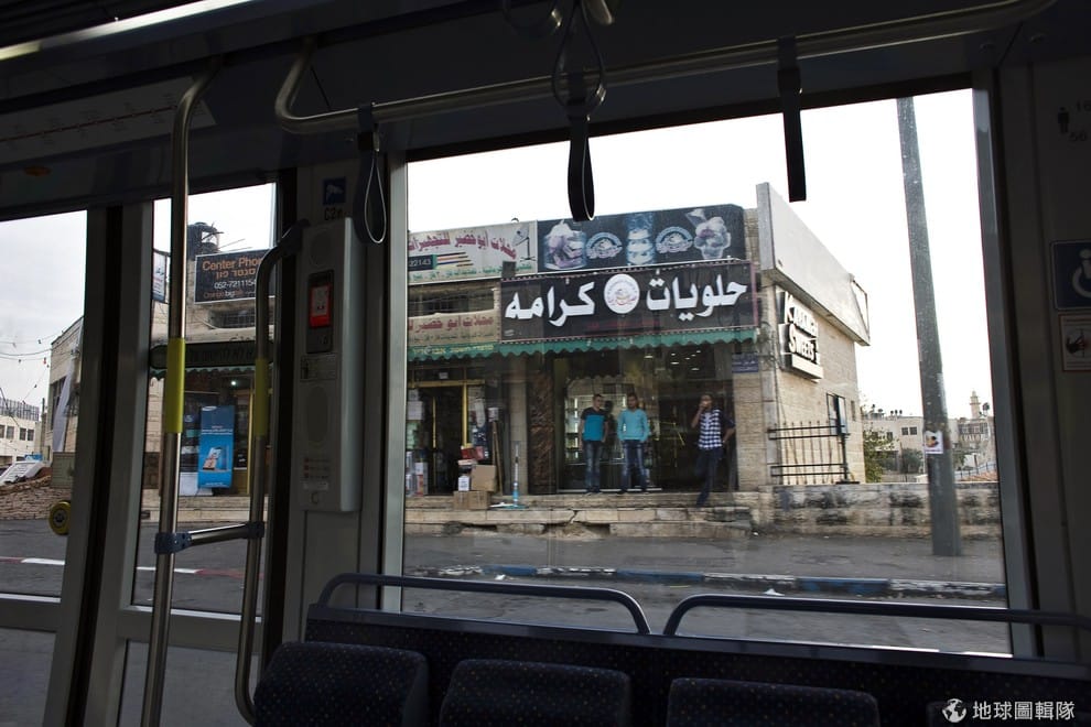 路透社電車行經巴勒斯坦人經營的商店