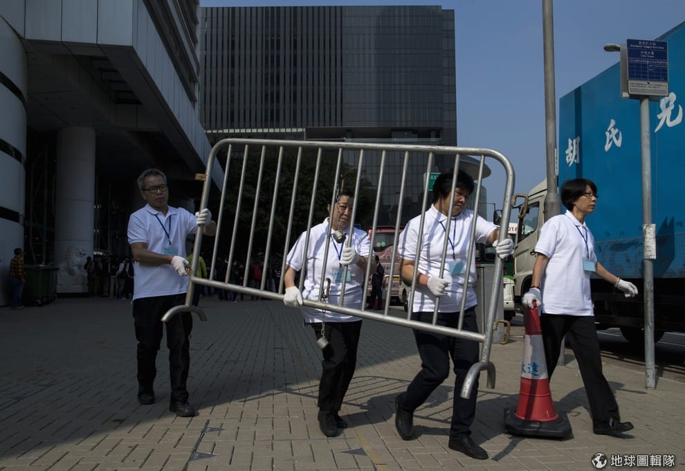 2014年11月18日:香港金鐘區的部分示威營地被清除。