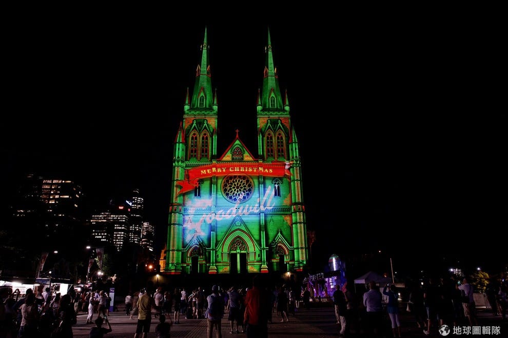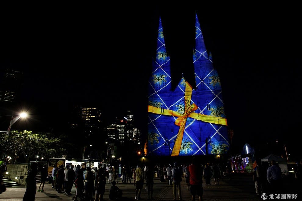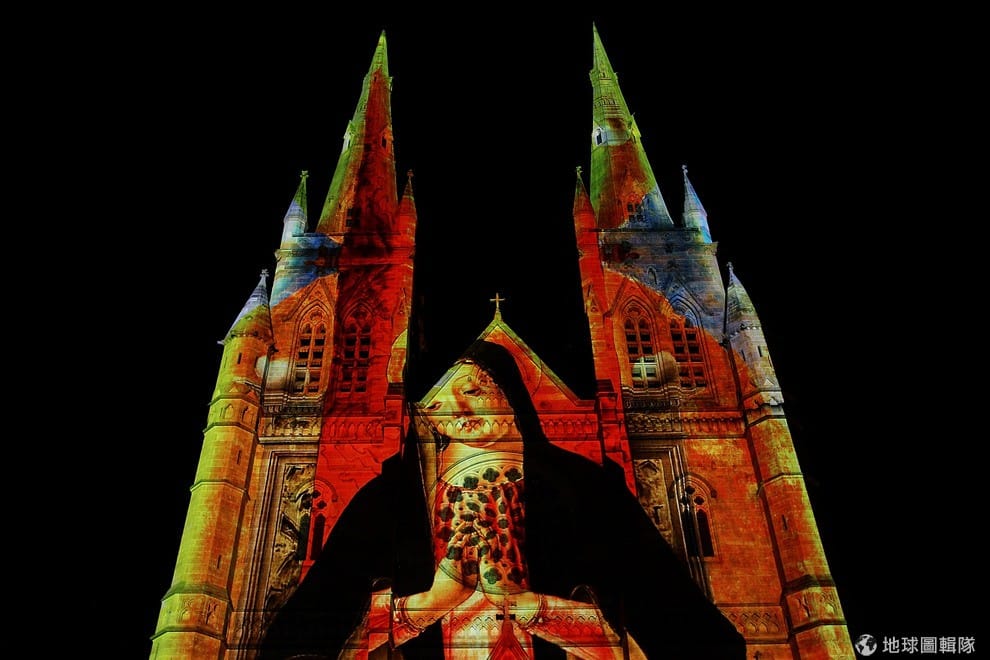 場景換到南半球的雪梨,聖瑪莉大教堂( St Mary's Cathedral)打上美麗的燈光秀。圖片來源:Lisa Maree Williams/Getty Images