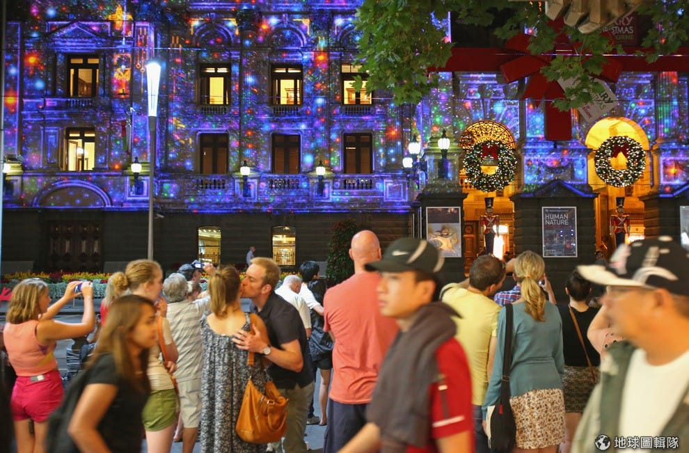 這場「聖誕之光」的燈光秀吸引好多當地民眾觀賞。圖片來源:Lisa Maree Williams/Getty Images