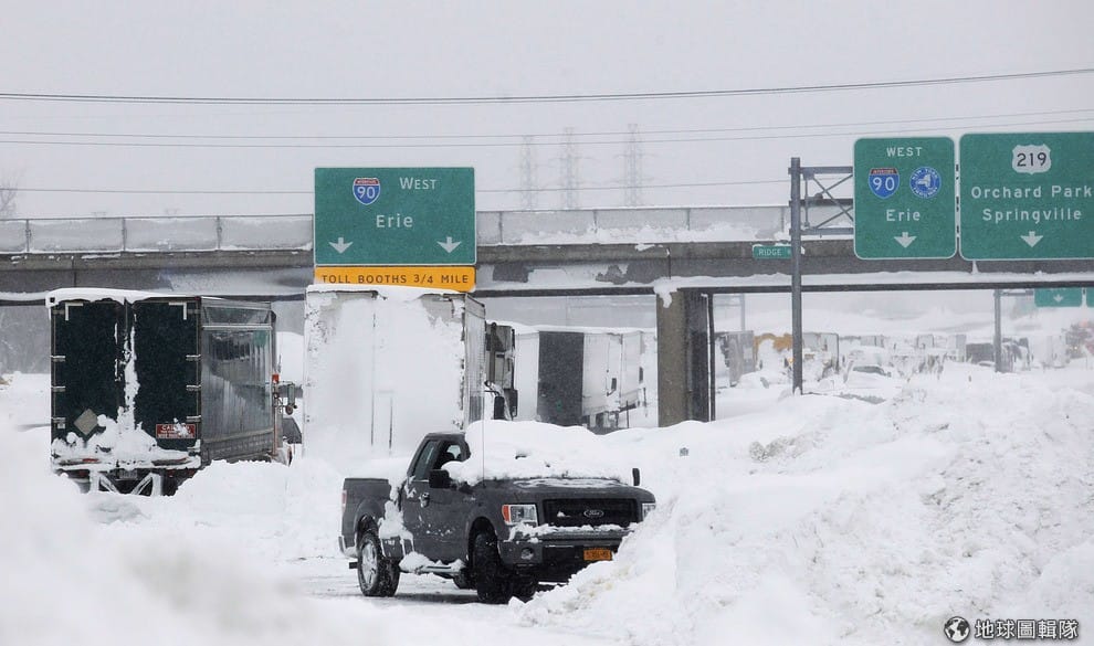週三開始,美國東北部大風雪侵襲北美五大湖區,讓該區出現累積達150公分的驚人積雪,甚至還釀成7人死亡的意外。