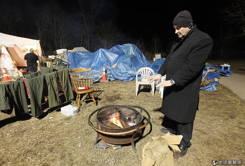 史坦頓部分居民仍然只能住在帳篷內,天寒地凍中只能依靠爐火取暖。圖片來源:Mario Tama/Getty Images