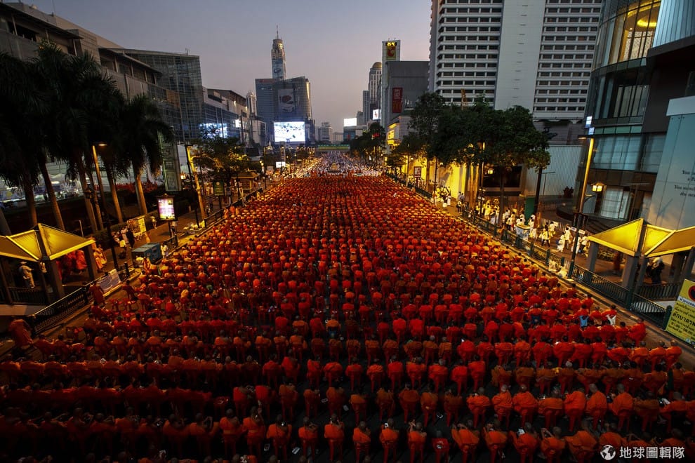 上週日時,曼谷市區可見數千名的佛教徒齊聚參加「布施」(alms-offering)儀式,根據主辦單位表示,他們接收到的食物與捐款會分給泰國南邊4省的323間寺廟以及士兵軍警。