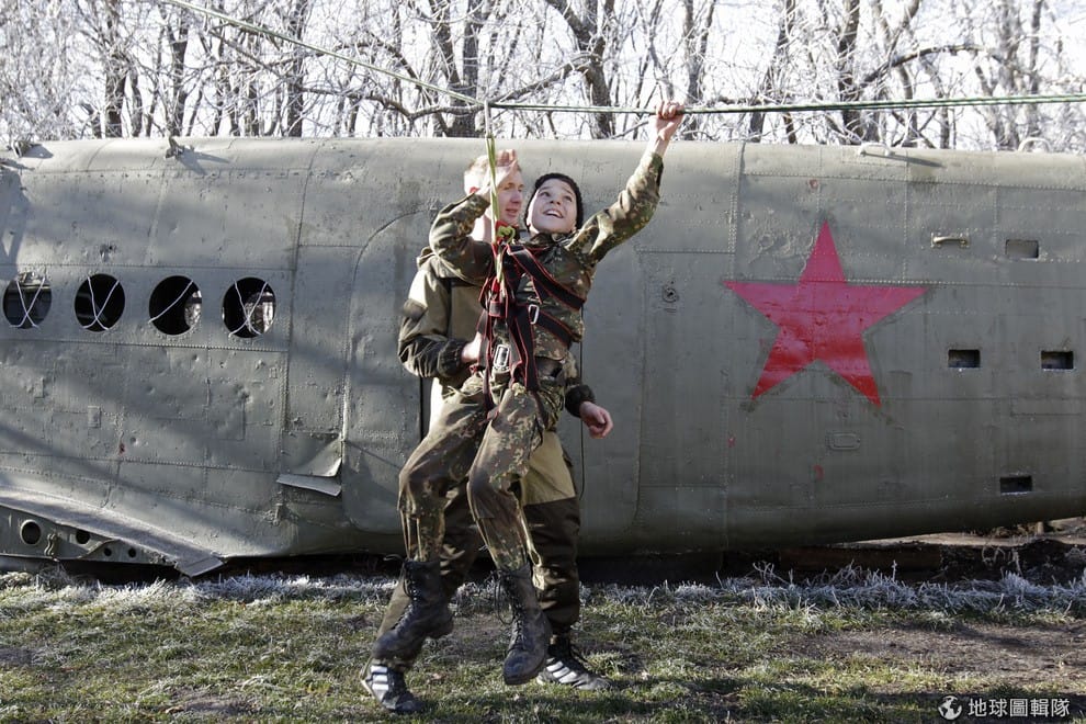 葉爾莫洛夫軍事學校(General Yermolov Cadet School)的學生正在練習繩索訓練。