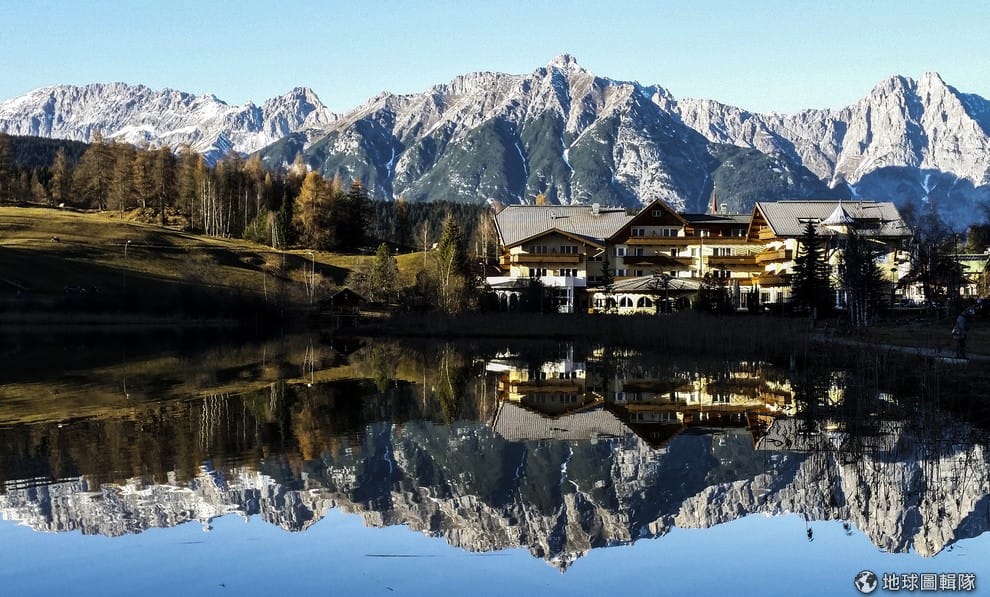 奧地利的因斯布魯克(Innsbruck)地區,可以見到秋色和湖水形成一幅美景。
