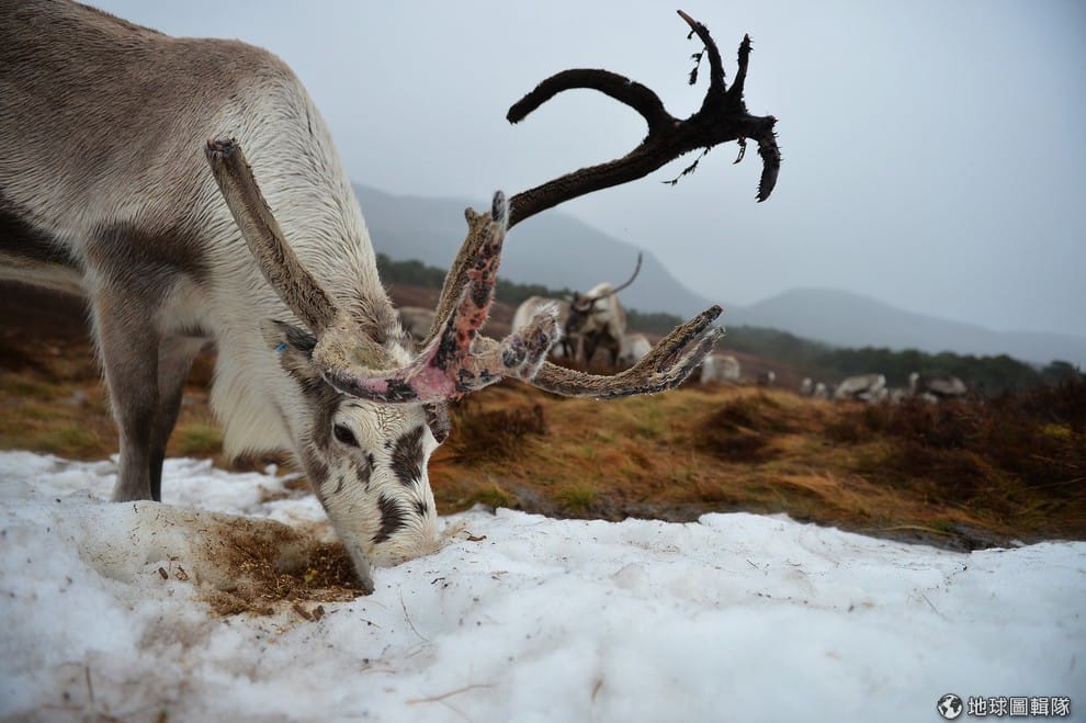 查克正帶著馴鹿們在極低溫的高地上找好料!圖片來源:Jeff J Mitchell/Getty Images