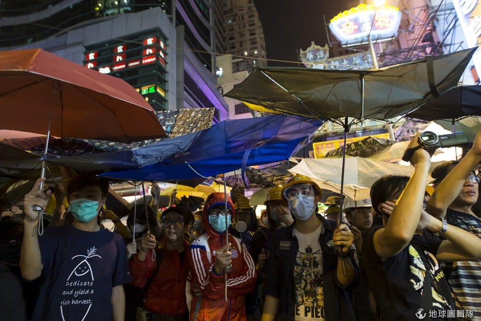 示威陣營拿出雨傘抵抗
