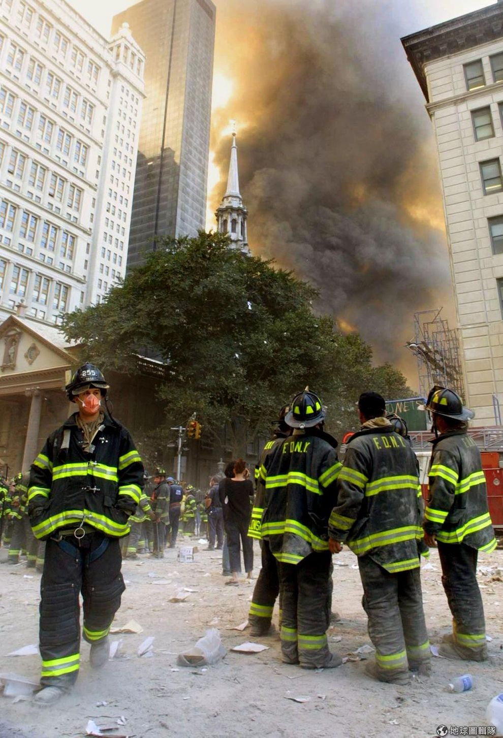 gettyimages大樓倒塌所掀起的煙塵滿佈整個紐約市區,人們必須帶起口罩才能處在其中。圖片來源:2001/09/11;Ron Agam/Getty Images