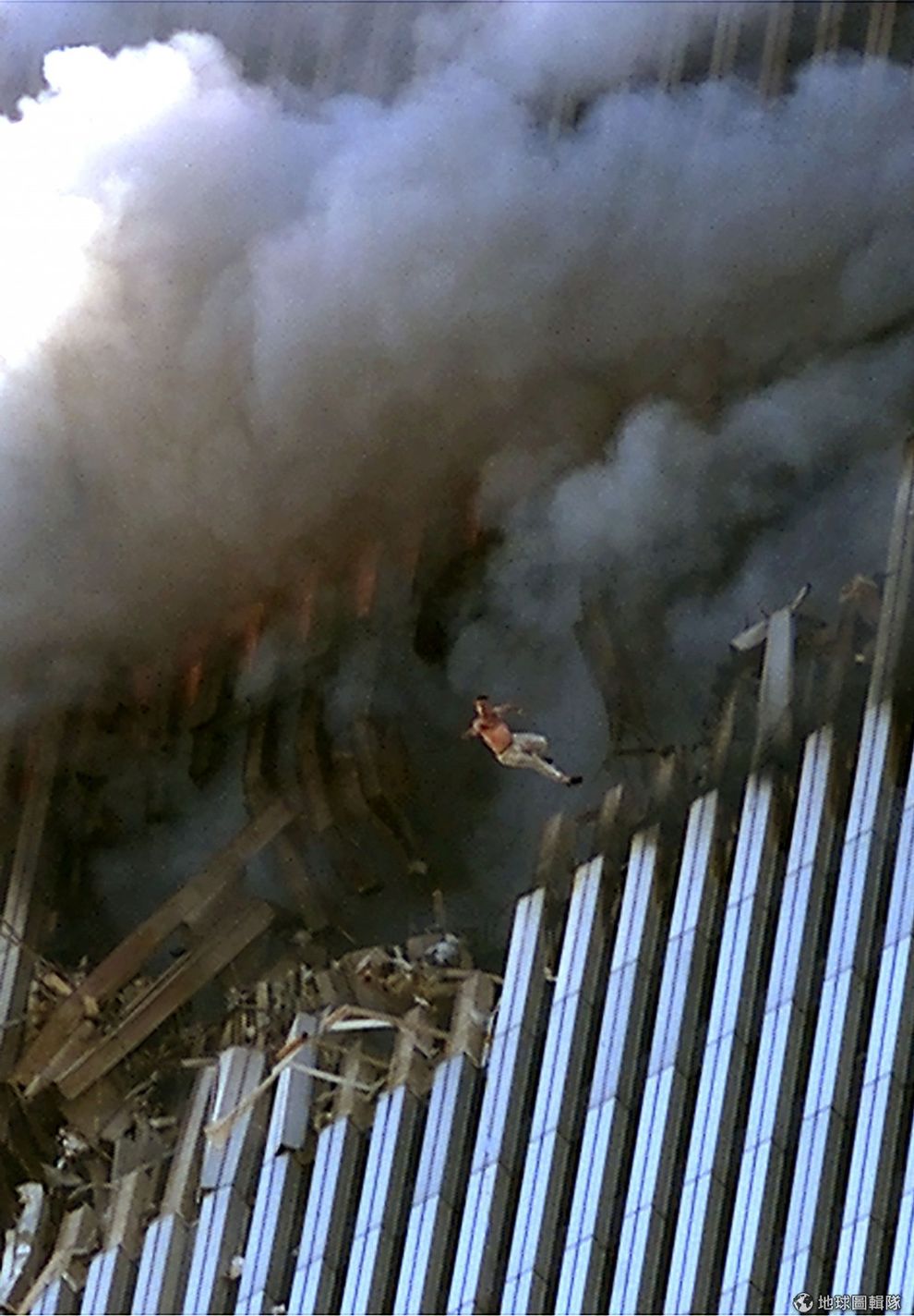 繼續閱讀受到撞擊的大樓內,罹難者從高熱的大樓內跳下。圖片來源:2001/09/11;Jose Jimenez/Primera Hora/Getty Images