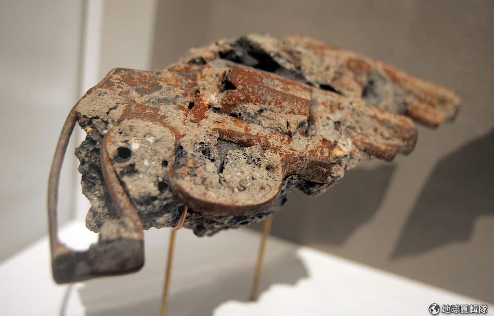 gettyimages事件發生當天,受到高熱融化的手槍。現在放在「事件紀念中心」(Tribute Center)中。圖片來源:2006/09/06;Mario Tama/Getty Images