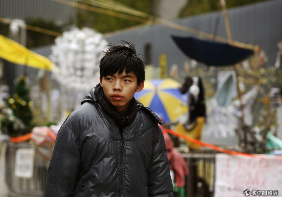 照片中是帶領學生抗爭的領導人之一黃之鋒