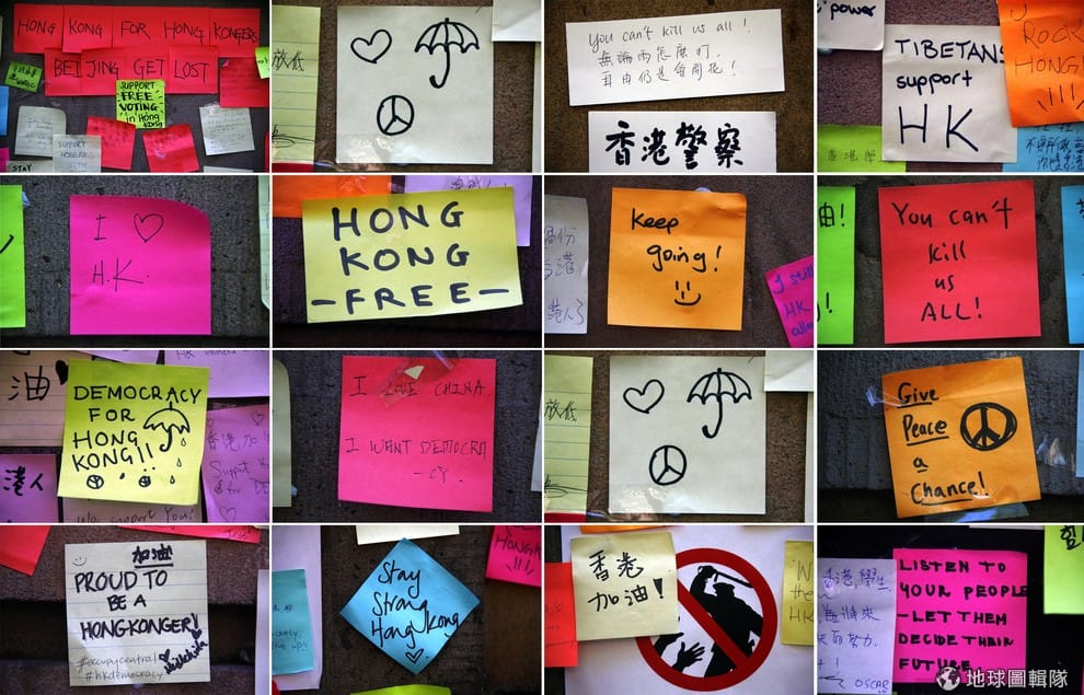 香港兩個多月的佔中行動得到各界支持,可以見到民眾的打氣留言