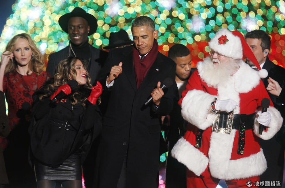 美國總統歐巴馬和與會者們開心起舞,12月4日這天是美國白宮第92屆的聖誕樹點燈活動。