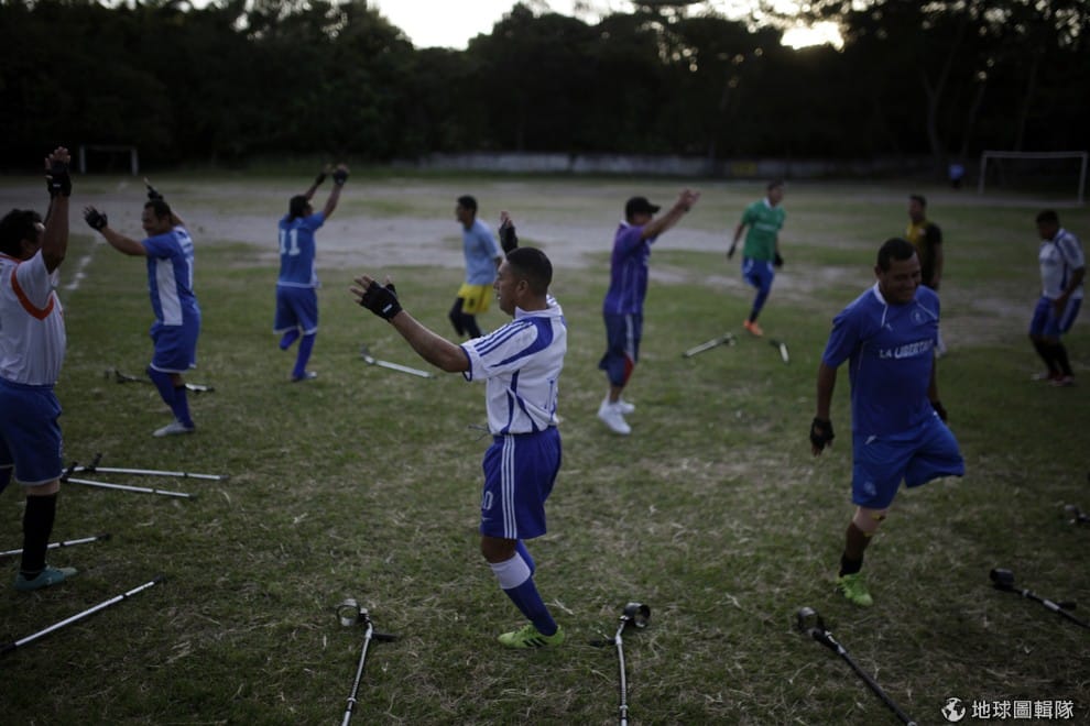 薩爾瓦多的國家截肢足球隊球員正在暖身,這支國家代表隊創立於1987年,主要是讓在內戰中失去四肢的軍人能從戰場換到球場上繼續展現自我,同時也能幫助他們復健。薩爾瓦多這支球隊曾在1987到1989連續三年得到世界冠軍。
