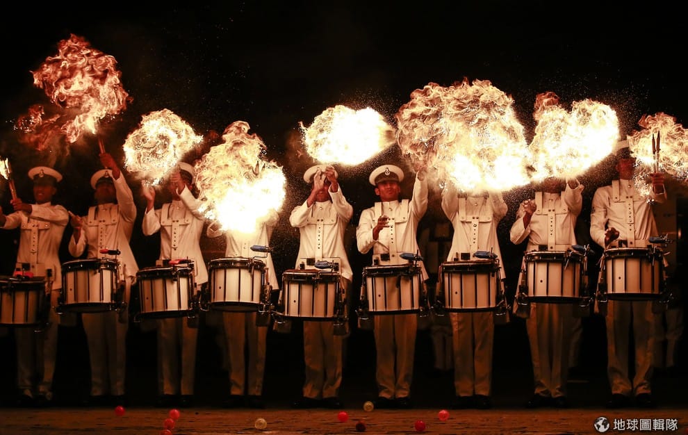 照片中的印度海軍一起把玩火焰,他們要慶祝印度的海軍節。