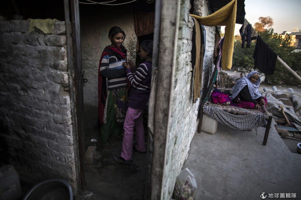 女孩們正在只有一個房間的小屋中聊天,她們的奶奶則是在屋子外休息。