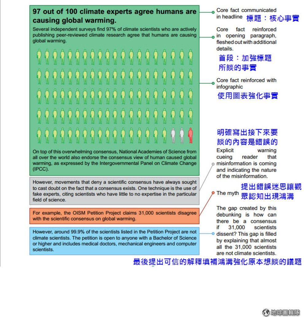 澳洲兩位學者所發表的《流言終結者手冊》(the Debunking Handbook)裡面談到幾項論點: