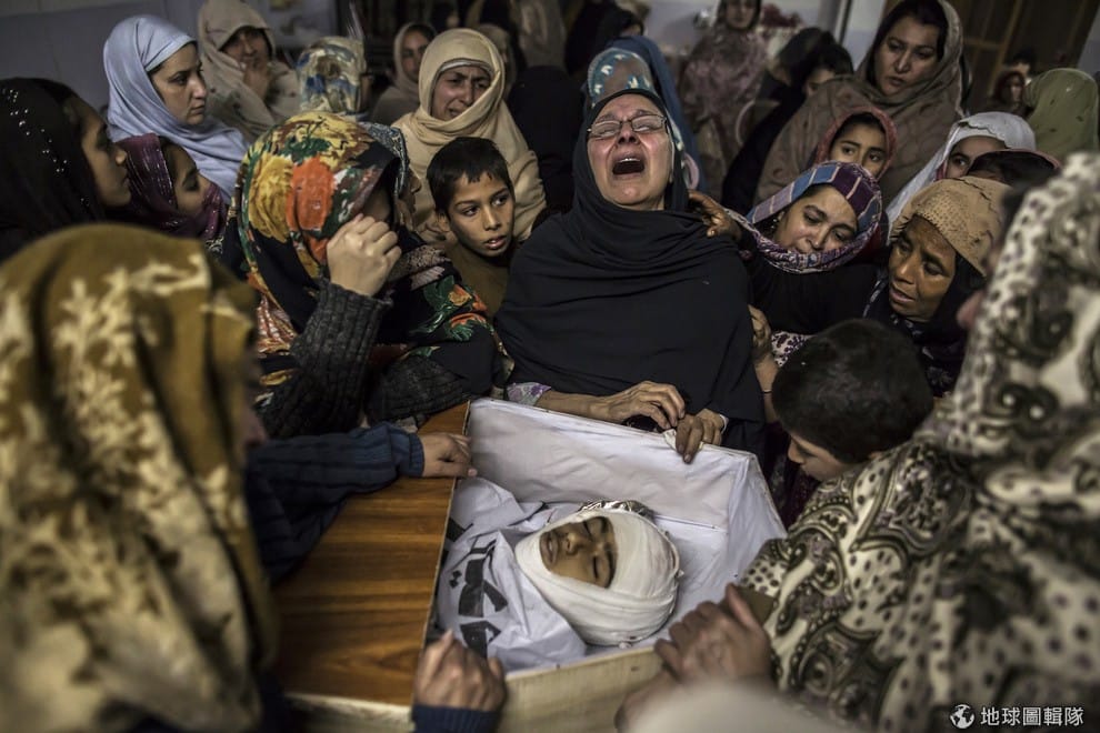 牆上掛著在貝斯蘭人質事件喪生孩童的照片,親友傷心欲絕。