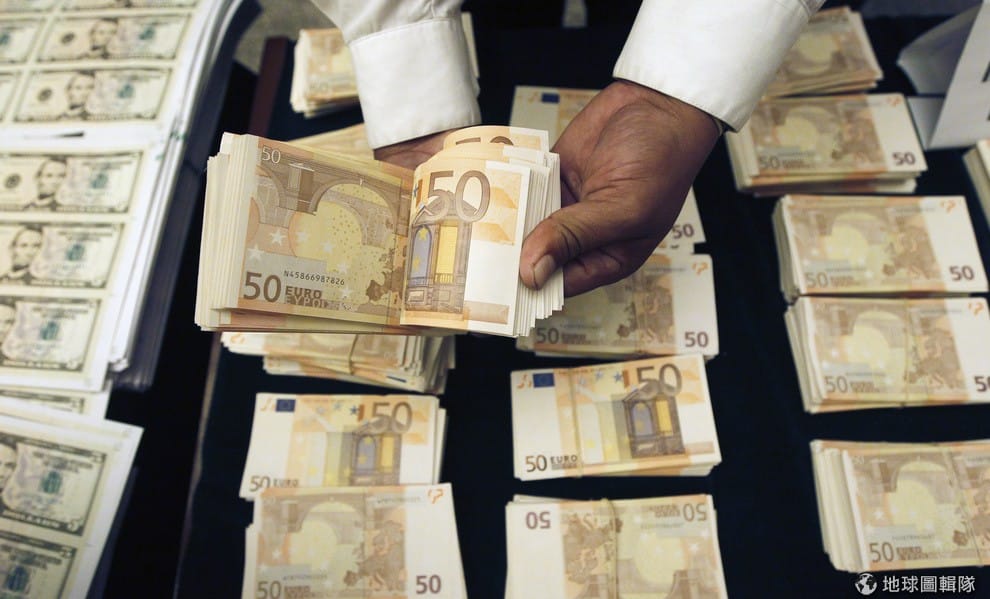 圖為警方查獲大量的偽造歐元,其中又以面額20和50的歐元最容易流通。