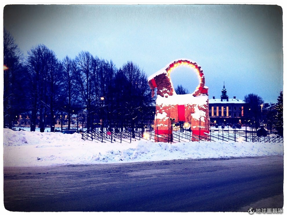 瑞典耶夫勒的聖誕稻草山羊高得很嚇人,許多頑皮小孩會放火讓山羊瞬間變成一團灰燼。Photo credit: Johan Hansson