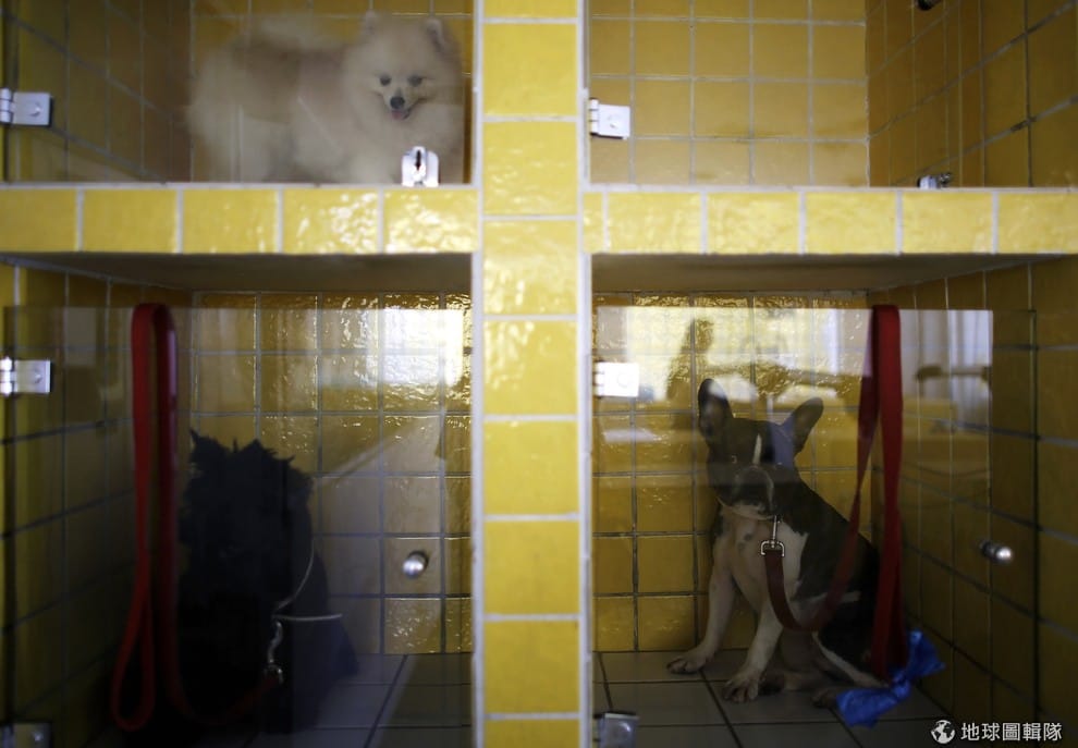 路透社其他等待美容療程的狗狗先待在磚造的等待區。