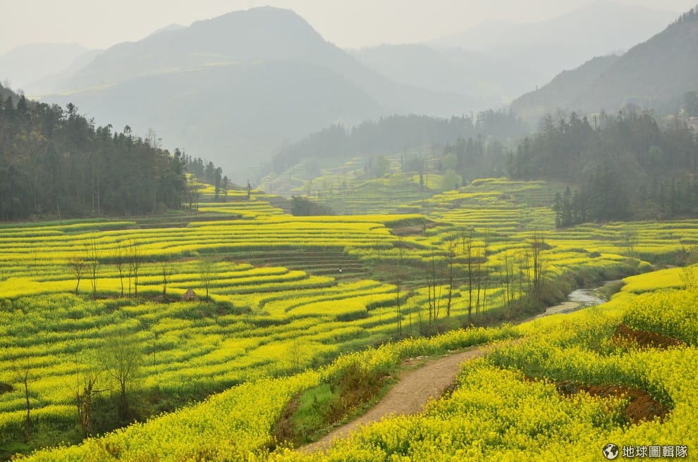 霓虹黃的油菜花每到三月便鋪滿了中國的羅平盆地(Luoping Basin),每年春季人們還會在這裡舉行慶典慶祝金光閃閃的油菜花田。