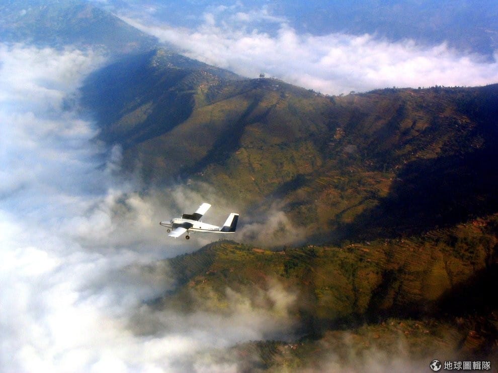 圖為一架飛機正飛越尼泊爾上空,該地層巒疊嶂,考驗飛行員的駕駛技術。Photo credit: Sam Judson