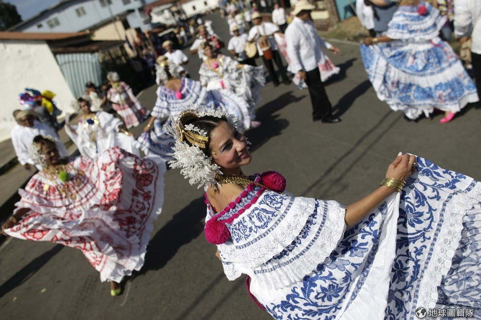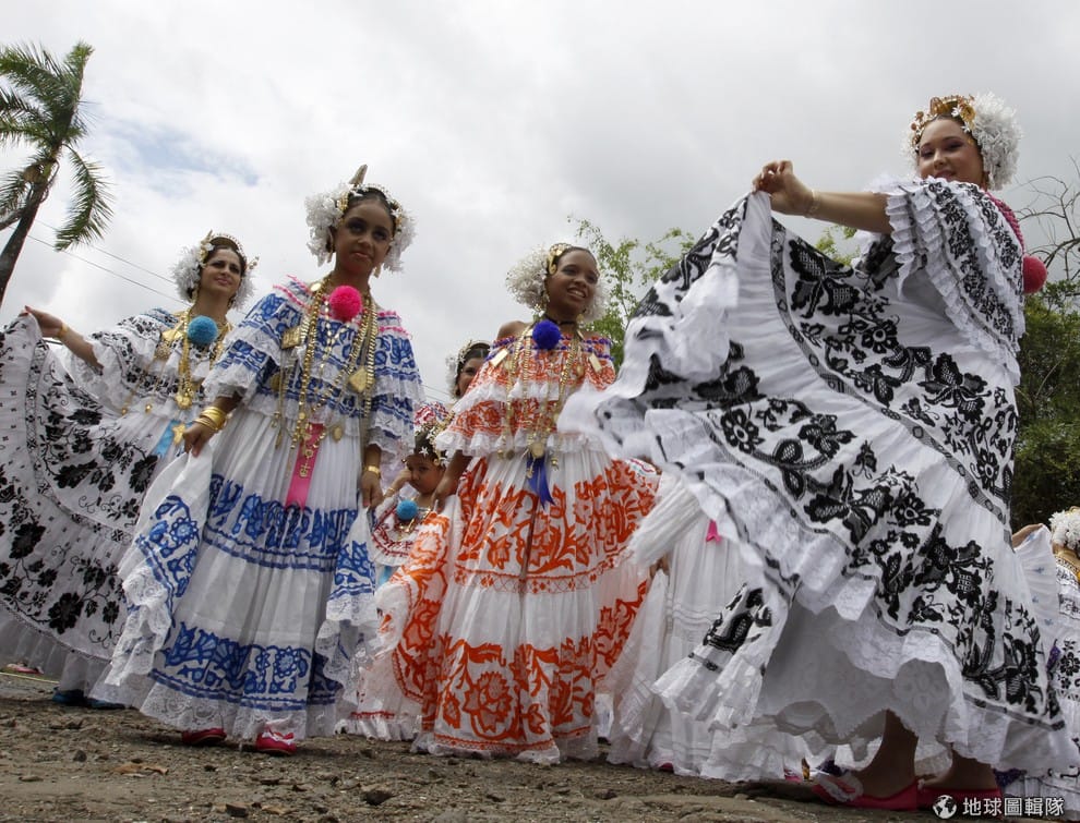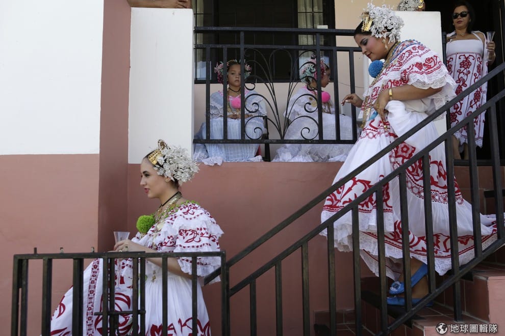 路透社拉著長裙,巴拿馬女孩已經打扮完畢要去參加遊行了。