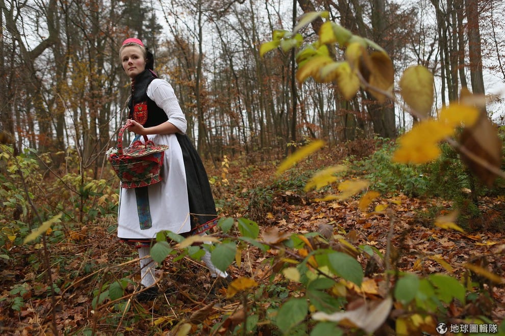 gettyimages裝扮成小紅帽的演員,她正走在200年前啟發格林兄弟創作出《小紅帽》故事的地點!圖片來源:Sean Gallup/Getty Images