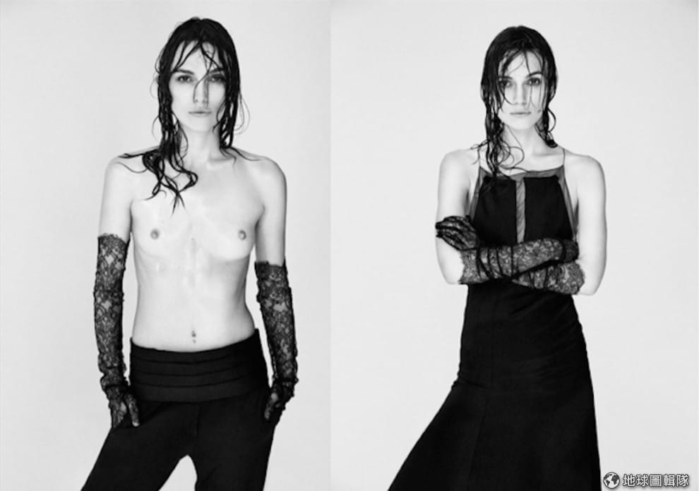 英國女星綺拉奈特莉(Keira Knightley)在十一月、拍攝 Interview 雜誌組圖時,大方上空展現她的身體、她認為這才是她最真實的一面。一直以來都被公認是「骨感美女」,並不是因為她刻意減肥,而是她從出道以來,體態始終如此,不過多數的媒體、雜誌甚至電影公司,都希望綺拉的身材看起來能夠「更更豐滿」,甚至在過去為《神鬼奇航》拍電影海報時,原本的平胸硬是被修到變 C Cup。她在接受泰晤士報訪問時表達了她對於女性身體的看法: