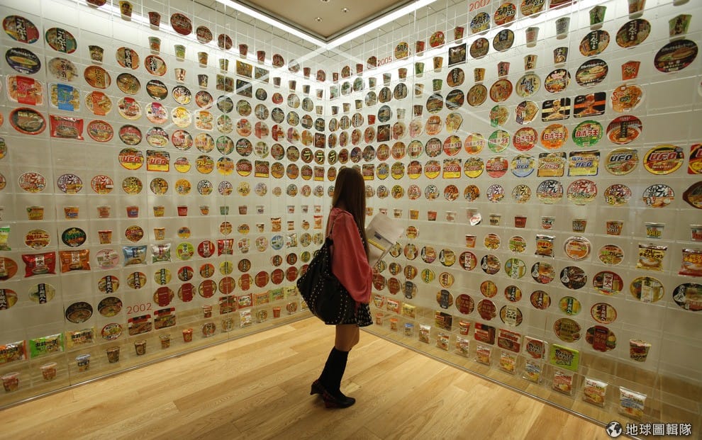 一名女子正在參觀日清泡麵博物館,日清食品公司出產的泡麵有上百種。