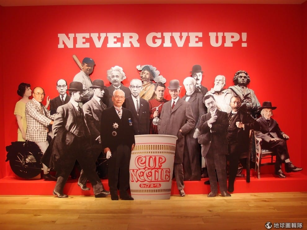 圖中和世界名人擺在一起的彩色安藤立牌站在日清杯麵旁。Photo credit: Guilhem Vellut