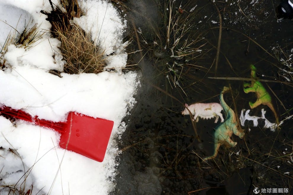 小朋友的玩具被冰封在雪地中,北愛爾蘭當地受到大風雪侵襲,造成交通大亂民眾財物受損。