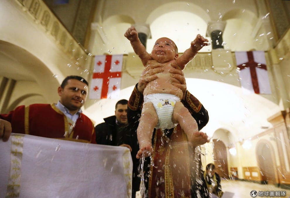 喬治亞首都提比里斯(Tbilisi)當地教堂內,牧師和民眾正忙著替新生寶寶進行受洗儀式。19號這天,喬治亞東正教在當地的三一大教堂舉辦第38屆受洗儀式,約近千名的寶寶接受了祝福。