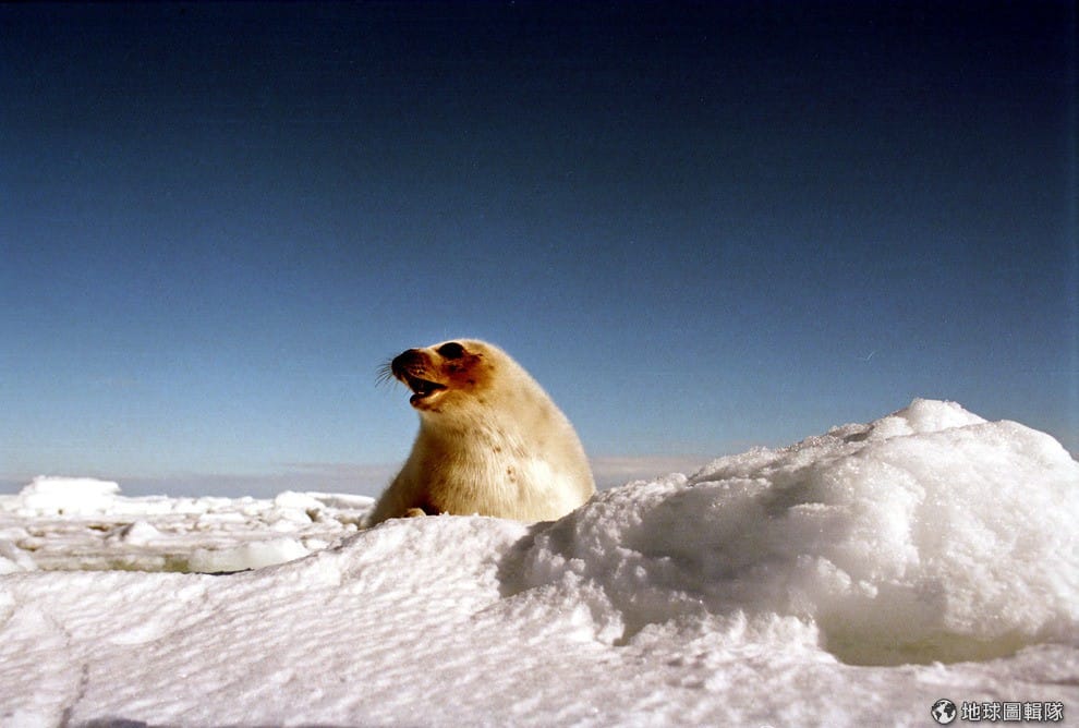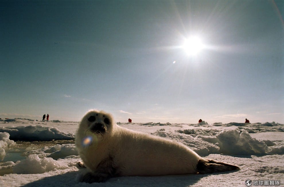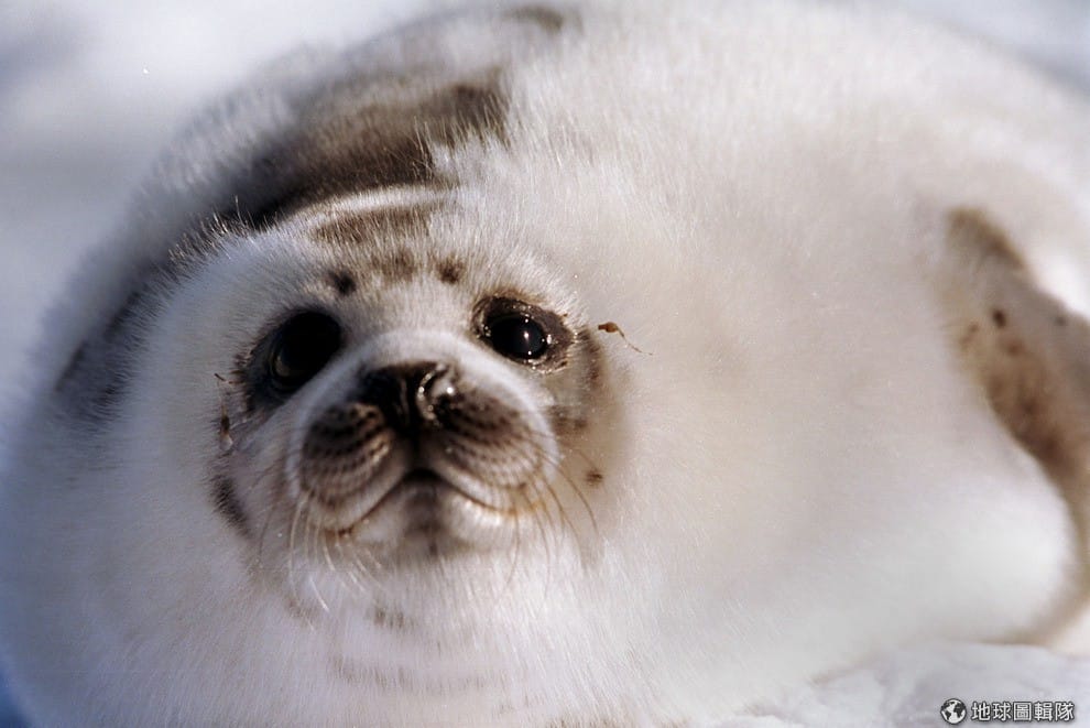 還沒有完全長大的小海豹,身上的毛皮仍然是全白帶有一點點斑點喔!圖片來源:Darren McCollester/Newsmakers
